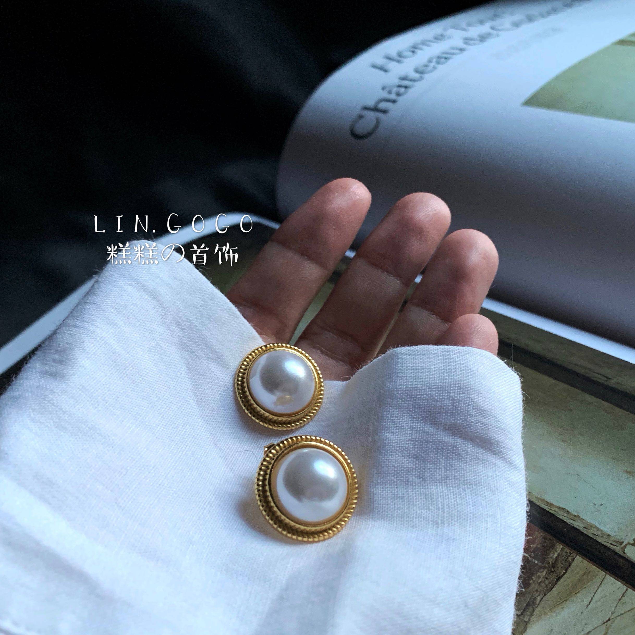 LINGOGO 白露。925纯银贝珠珍珠镀金边复古气质小众设计宫廷耳环热门设计联盟服务商