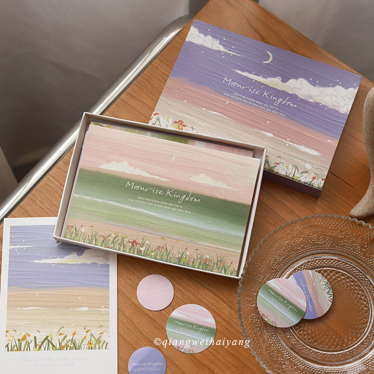 少女油画信笺套装 风景云月小王子信纸信封明信片装饰素材热门设计联盟服务商