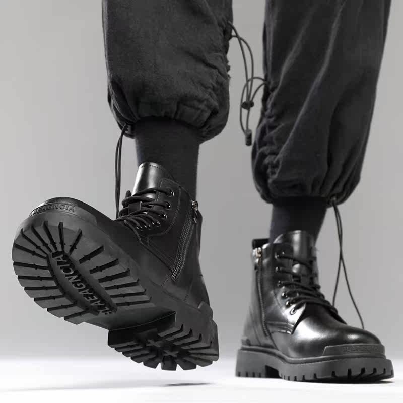 靴男夏季款透气薄款黑色高帮皮鞋机车秋季英伦风工装休闲潮鞋热门设计联盟服务商