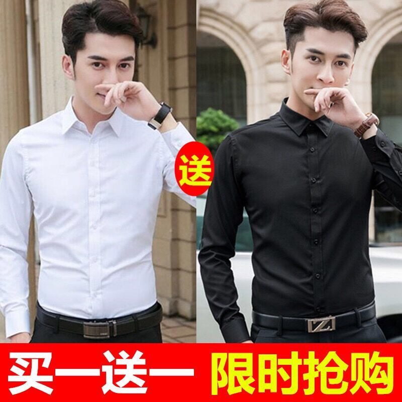 春夏季长袖男白色衬衫男士修身纯色商务工装职业正装免烫衬衣男装热门设计联盟服务商