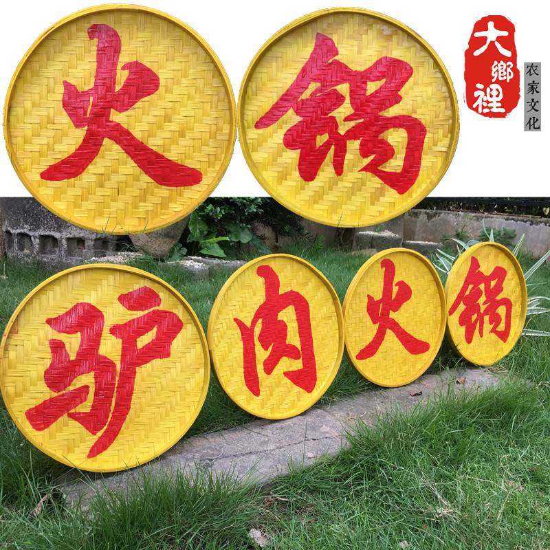 定制农家乐土菜馆餐厅吊灯竹牌匾店招牌广告牌字匾簸箕字餐厅对联热门设计联盟服务商