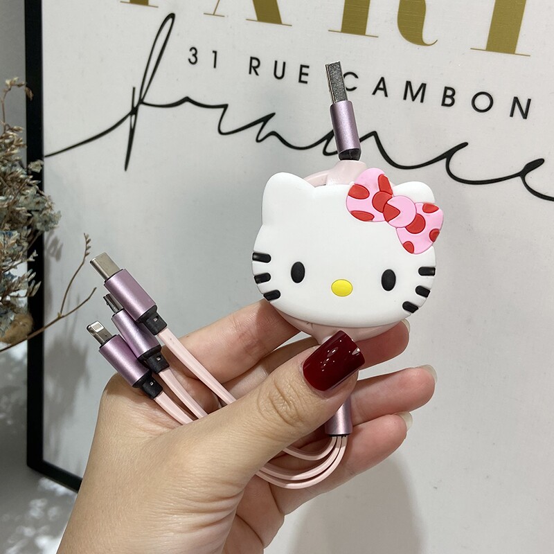 哈喽kitty数据线三合一kiti猫安卓线女USB车载一拖三凯蒂猫充电线热门设计联盟服务商