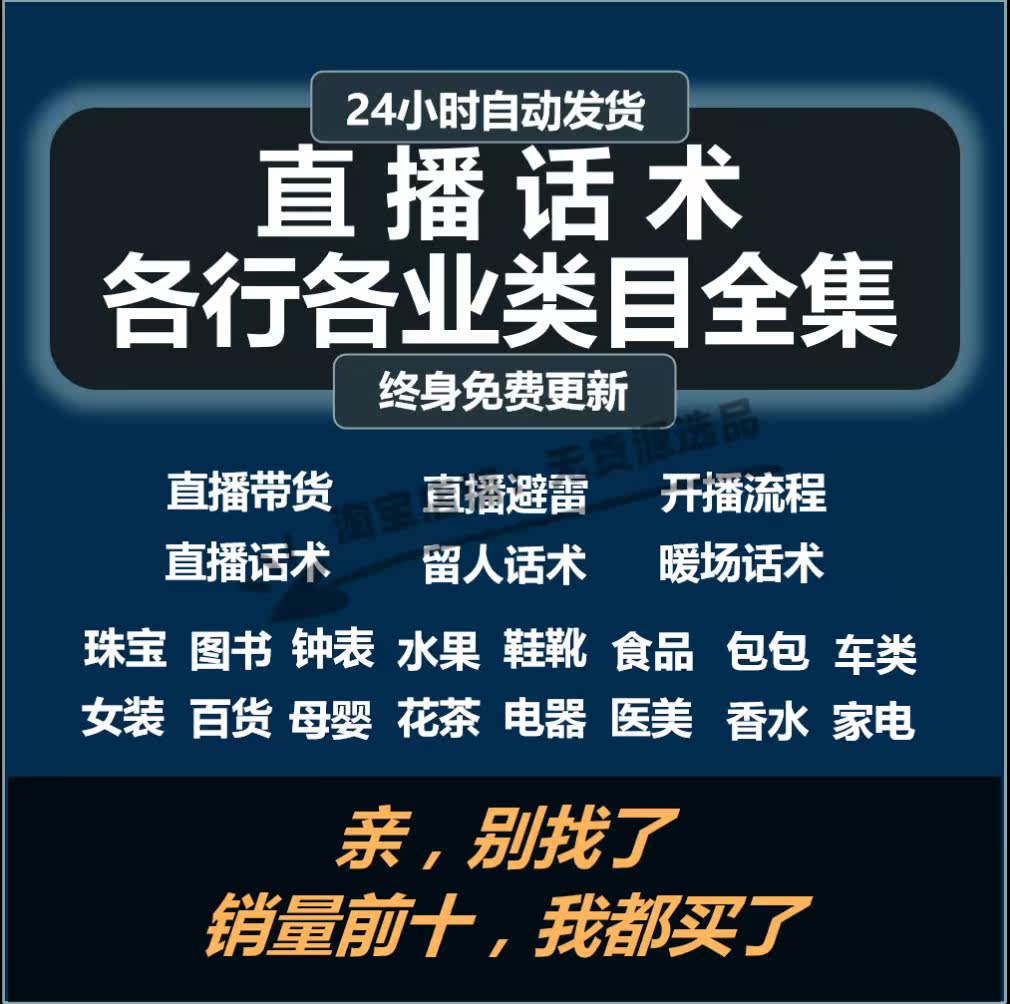 直播话术大全课程主播卖货聊天互动文案剧本暖场脚本资料留人台词热门设计联盟服务商