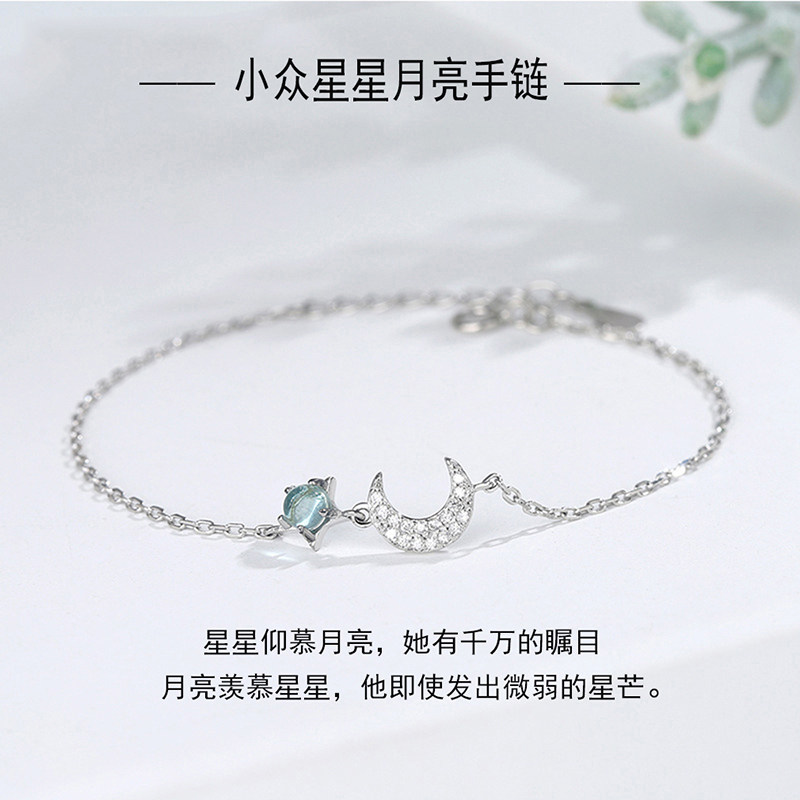 925纯银小众简约设计星星月亮手链女甜美琉璃镶钻手饰学生热门设计联盟服务商