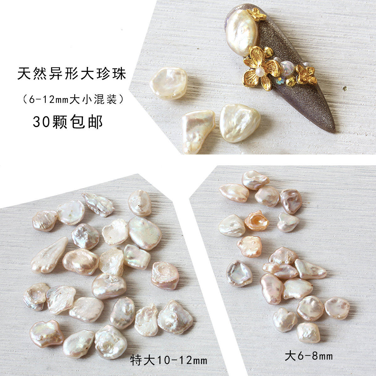 天然巴洛克珍珠 涩味美甲素材 可diy吊坠耳钉 30粒大小混装8-12mm热门设计联盟服务商