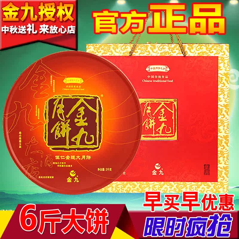 【金九6斤皇月礼盒装】伍仁金腿大饼3kg广东湛江吴川中秋月饼团购热门设计联盟服务商